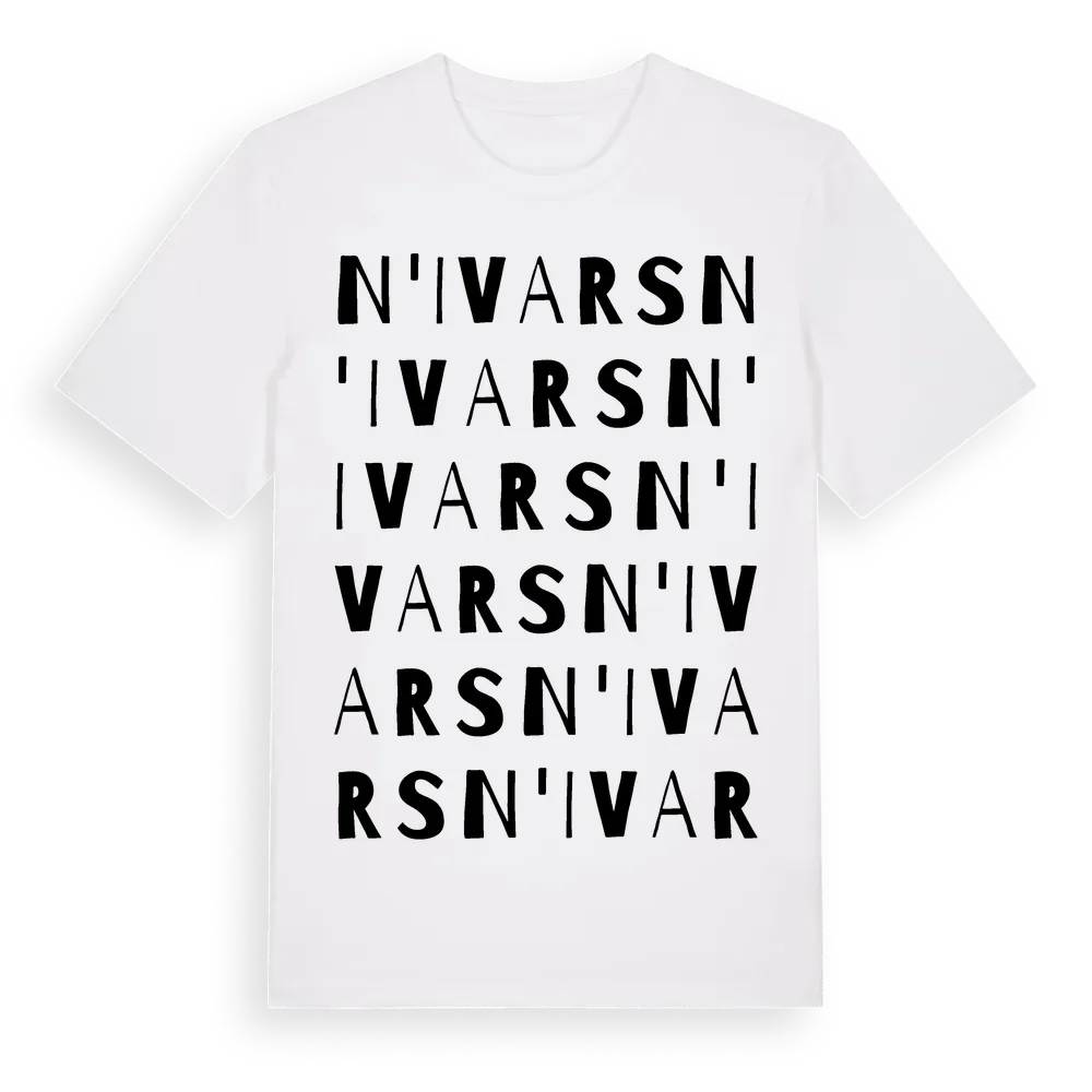 N'ivars ordlek t-shirt är inspirerad av N'ivars i Jämtlands län, Sverige. Tröjan är designad för dig som har en speciell koppling till platsen – oavsett om du bor här, har rötterna här eller bara älskar N'ivars.