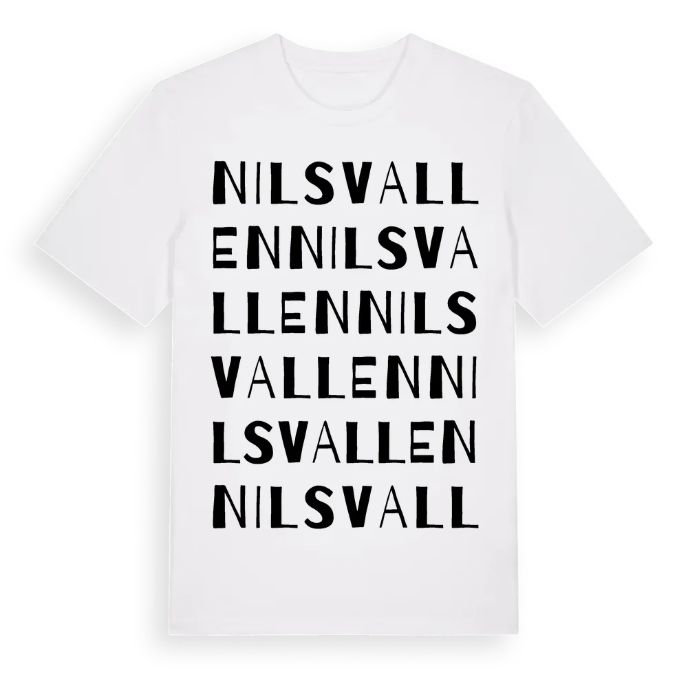 Nilsvallen ordlek t-shirt är inspirerad av byn Nilsvallen i Jämtlands län, Sverige. Tröjan är designad för dig som har en speciell koppling till platsen – oavsett om du bor här, har rötterna här eller bara älskar Nilsvallen.