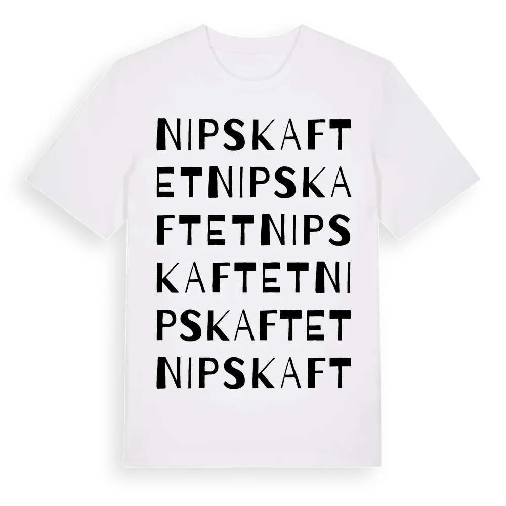 Nipskaftet ordlek t-shirt är inspirerad av Nipskaftet i Jämtlands län, Sverige. Tröjan är designad för dig som har en speciell koppling till platsen – oavsett om du bor här, har rötterna här eller bara älskar Nipskaftet.