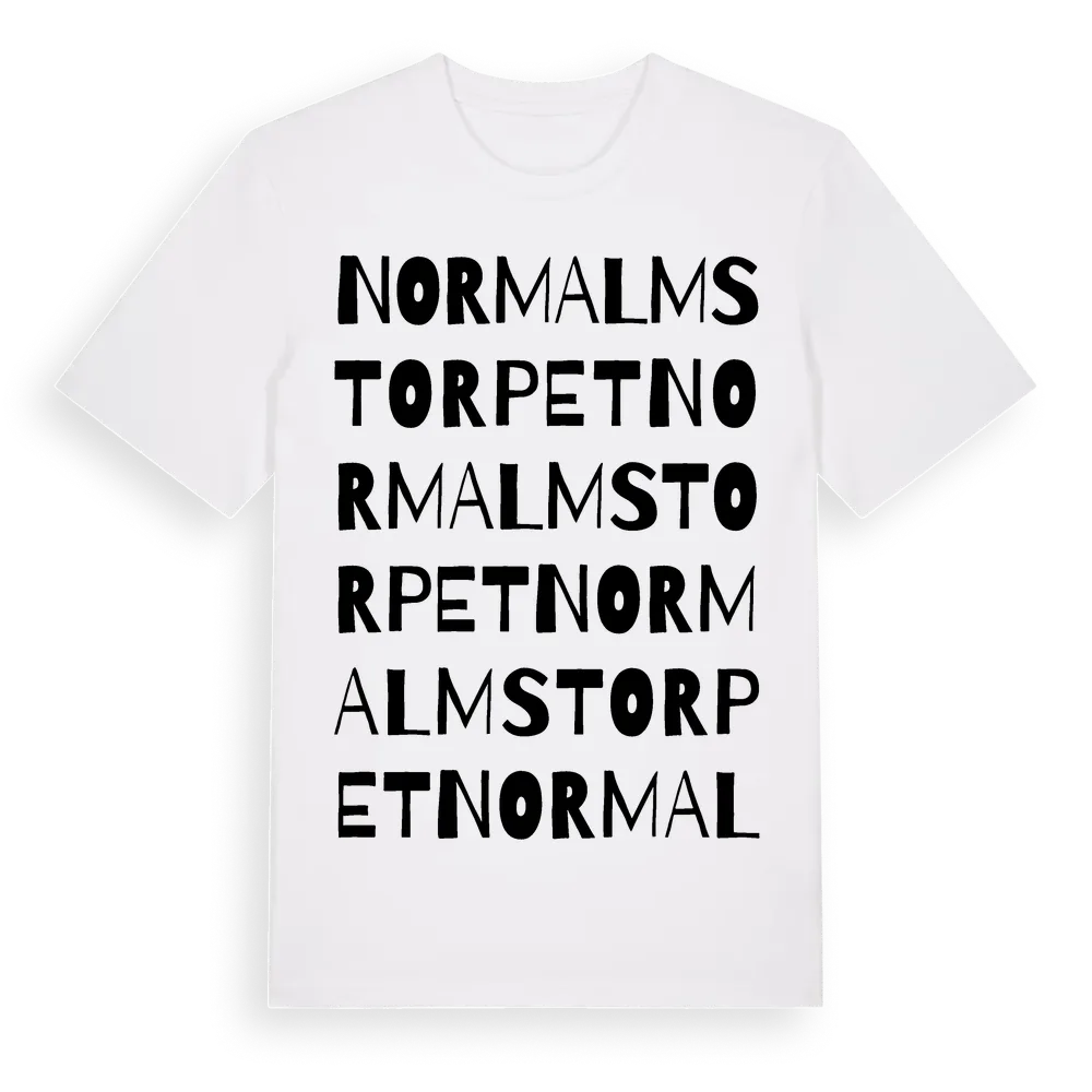 En ordlek byggd på Normalmstorpets namn. Subtilt och klurig – ett motiv som bara de som verkligen känner platsen fullt ut förstår. Premium bomull, unisex – från Normalmstorpet i Jämtlands län.