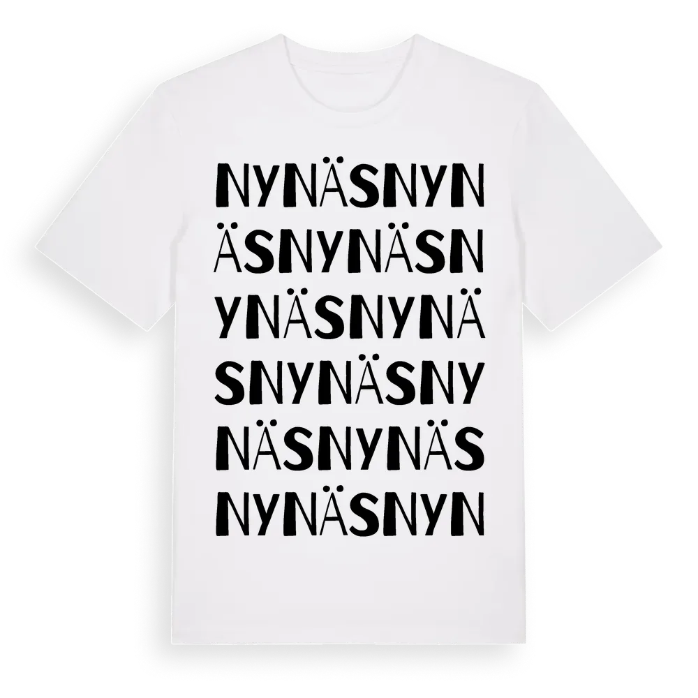 Nynäs ordlek t-shirt är inspirerad av Nynäs i Jämtlands län, Sverige. Tröjan är designad för dig som har en speciell koppling till platsen – oavsett om du bor här, har rötterna här eller bara älskar Nynäs.