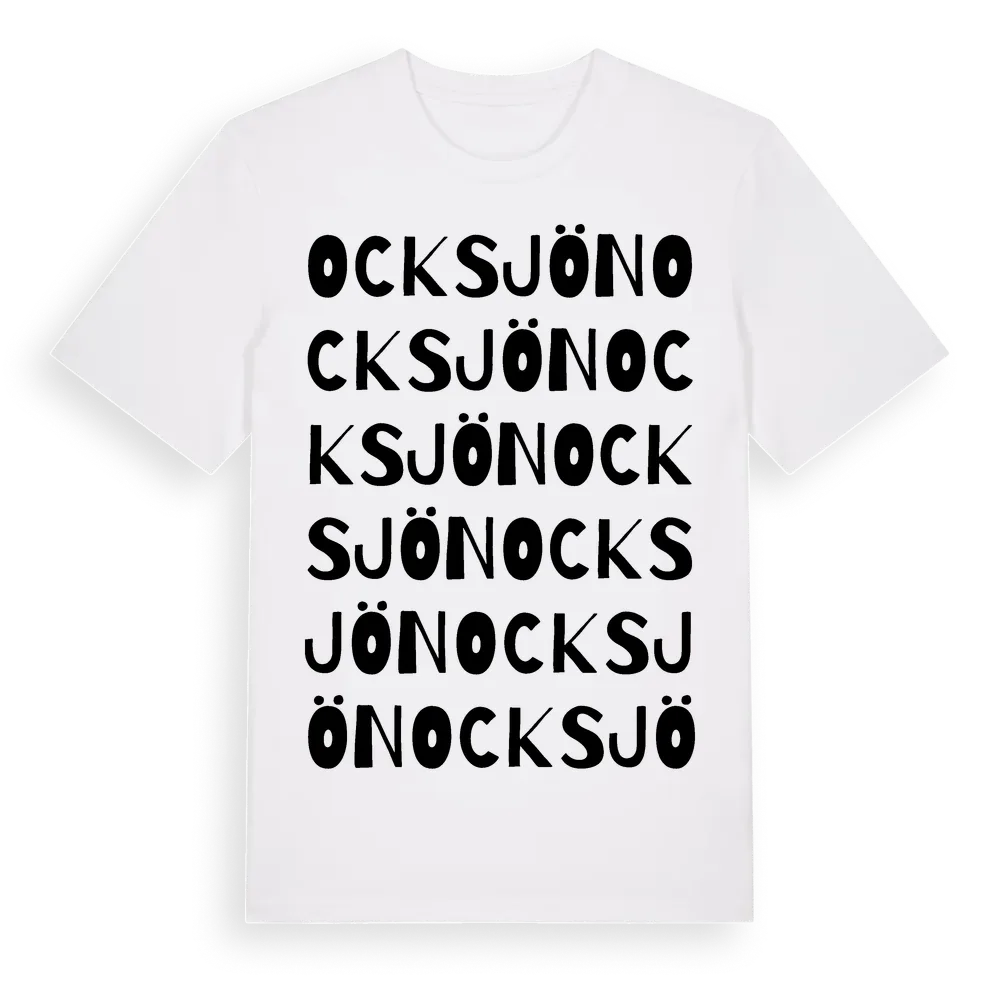 Ocksjön ordlek t-shirt är inspirerad av byn Ocksjön i Jämtlands län, Sverige. Tröjan är designad för dig som har en speciell koppling till platsen – oavsett om du bor här, har rötterna här eller bara älskar Ocksjön.