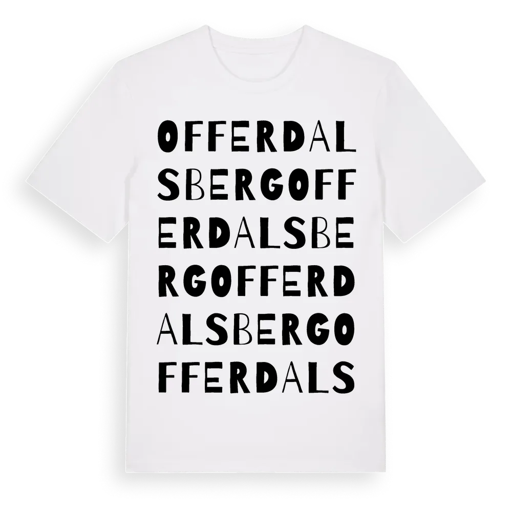 Offerdalsberg ordlek t-shirt är inspirerad av byn Offerdalsberg i Jämtlands län, Sverige. Tröjan är designad för dig som har en speciell koppling till platsen – oavsett om du bor här, har rötterna här eller bara älskar Offerdalsberg.