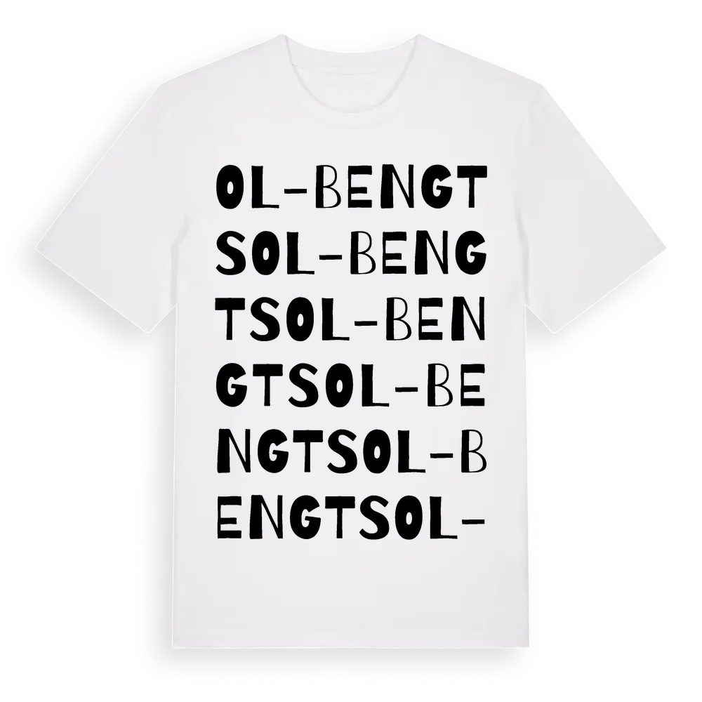Ol-Bengts ordlek t-shirt är inspirerad av Ol-Bengts i Jämtlands län, Sverige. Tröjan är designad för dig som har en speciell koppling till platsen – oavsett om du bor här, har rötterna här eller bara älskar Ol-Bengts.