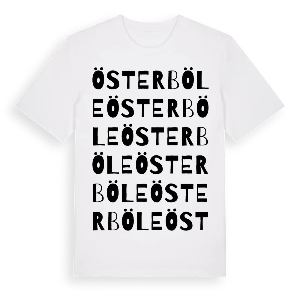Österböle ordlek t-shirt är inspirerad av byn Österböle i Jämtlands län, Sverige. Tröjan är designad för dig som har en speciell koppling till platsen – oavsett om du bor här, har rötterna här eller bara älskar Österböle.