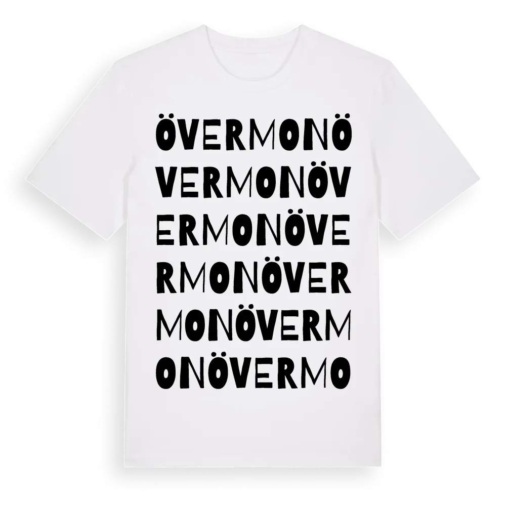 Övermon ordlek t-shirt är inspirerad av byn Övermon i Jämtlands län, Sverige. Tröjan är designad för dig som har en speciell koppling till platsen – oavsett om du bor här, har rötterna här eller bara älskar Övermon.