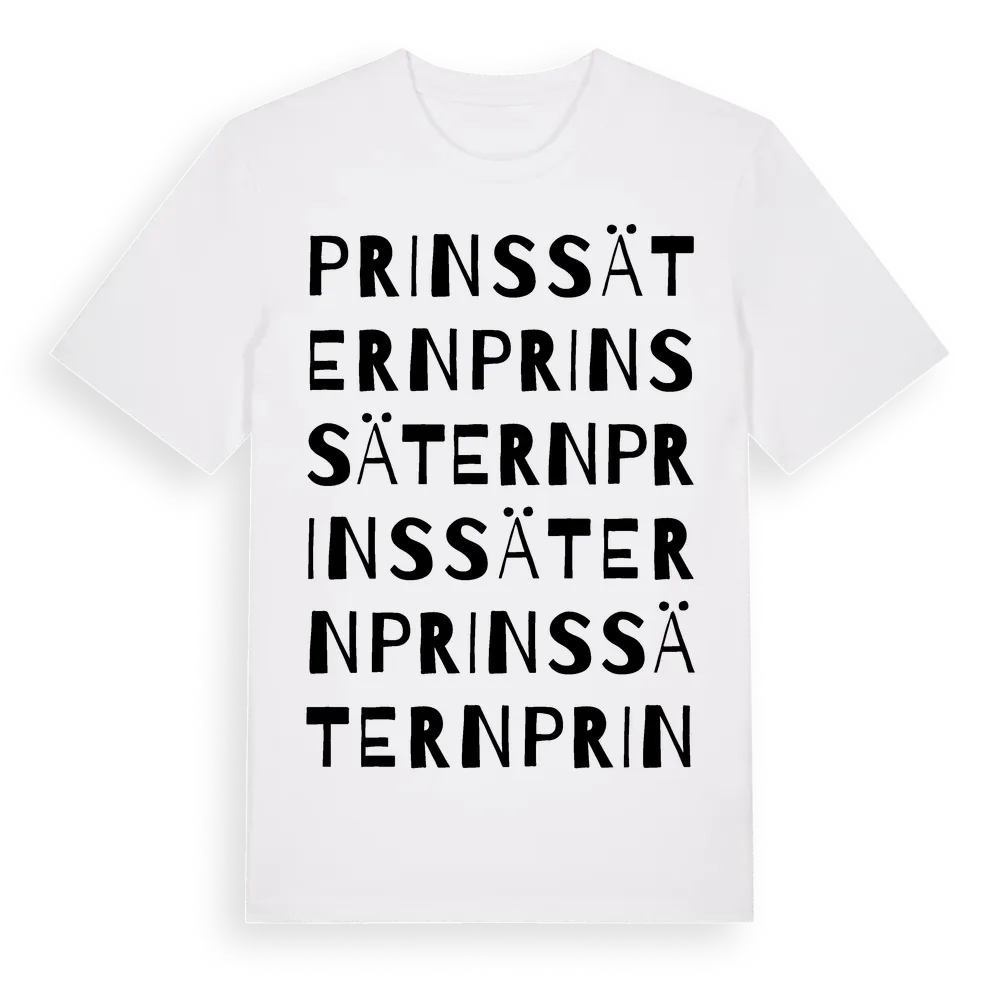 Prinssätern ordlek t-shirt är inspirerad av Prinssätern i Jämtlands län, Sverige. Tröjan är designad för dig som har en speciell koppling till platsen – oavsett om du bor här, har rötterna här eller bara älskar Prinssätern.