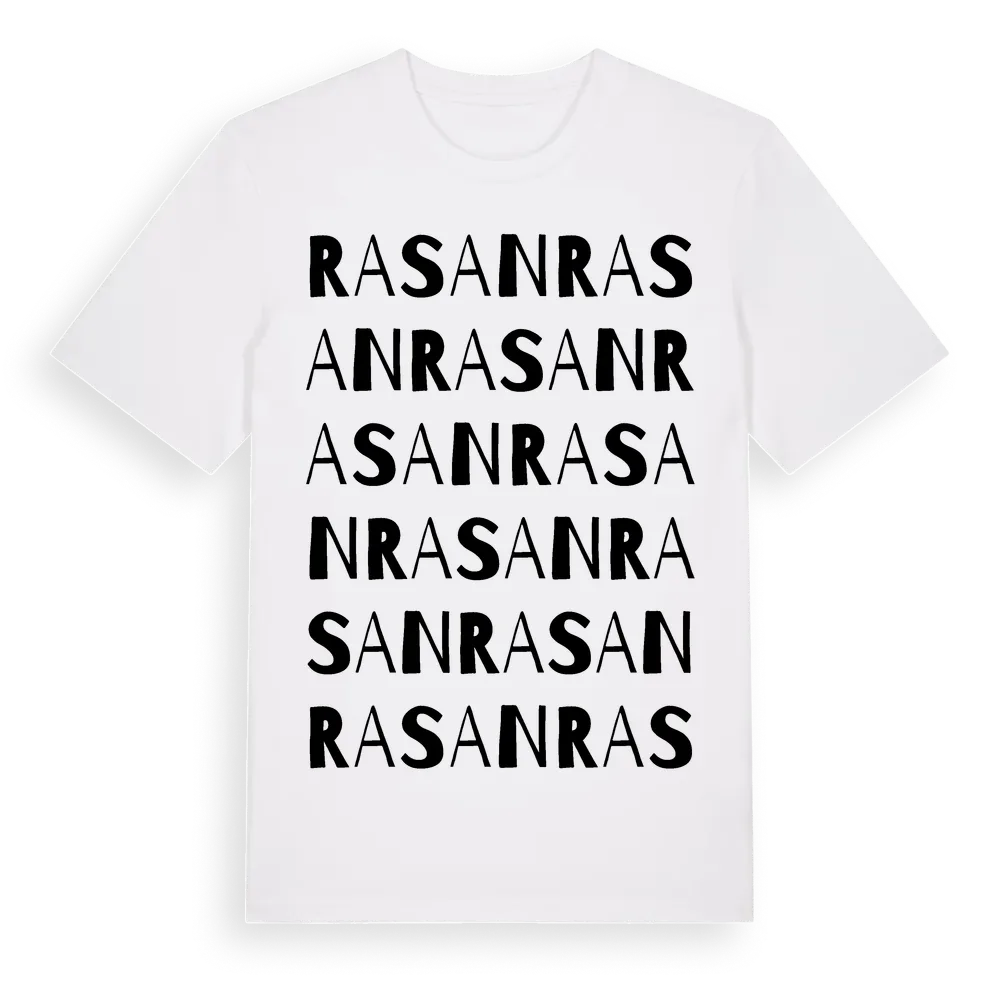 En ordlek byggd på Rasans namn. Subtilt och klurig – ett motiv som bara de som verkligen känner platsen fullt ut förstår. Premium bomull, unisex – från Rasan i Jämtlands län.