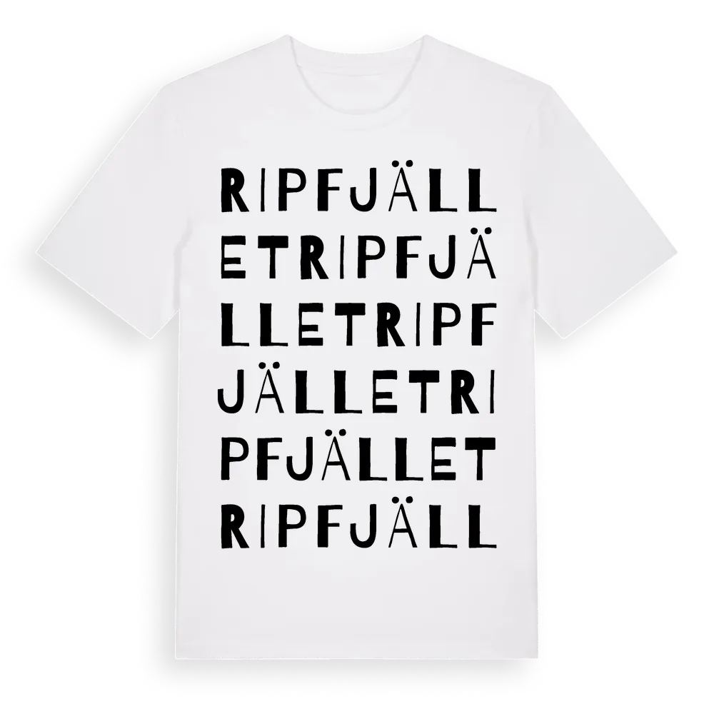 Ripfjället ordlek t-shirt är inspirerad av byn Ripfjället i Jämtlands län, Sverige. Tröjan är designad för dig som har en speciell koppling till platsen – oavsett om du bor här, har rötterna här eller bara älskar Ripfjället.
