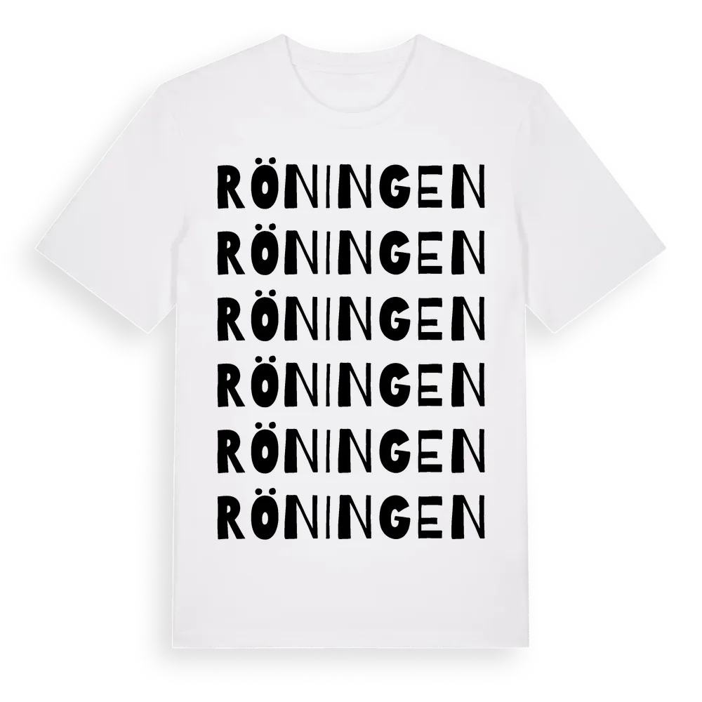 Röningen ordlek t-shirt är inspirerad av Röningen i Jämtlands län, Sverige. Tröjan är designad för dig som har en speciell koppling till platsen – oavsett om du bor här, har rötterna här eller bara älskar Röningen.