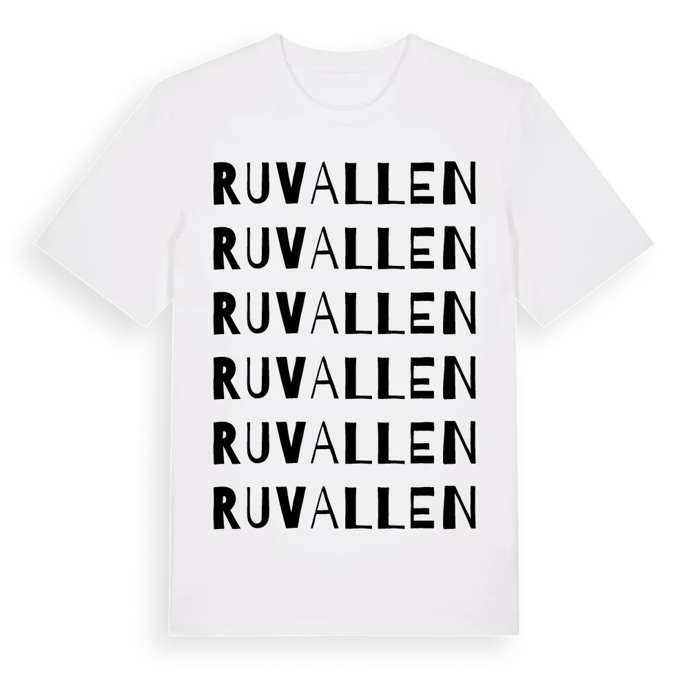 Ruvallen ordlek t-shirt är inspirerad av Ruvallen i Jämtlands län, Sverige. Tröjan är designad för dig som har en speciell koppling till platsen – oavsett om du bor här, har rötterna här eller bara älskar Ruvallen.