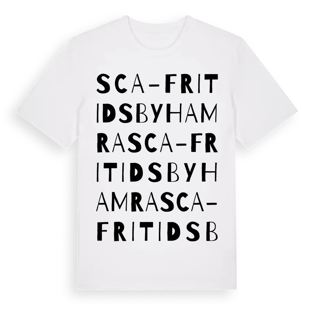 Sca-Fritidsby Hamra ordlek t-shirt är inspirerad av Sca-Fritidsby Hamra i Jämtlands län, Sverige. Tröjan är designad för dig som har en speciell koppling till platsen – oavsett om du bor här, har rötterna här eller bara älskar Sca-Fritidsby Hamra.
