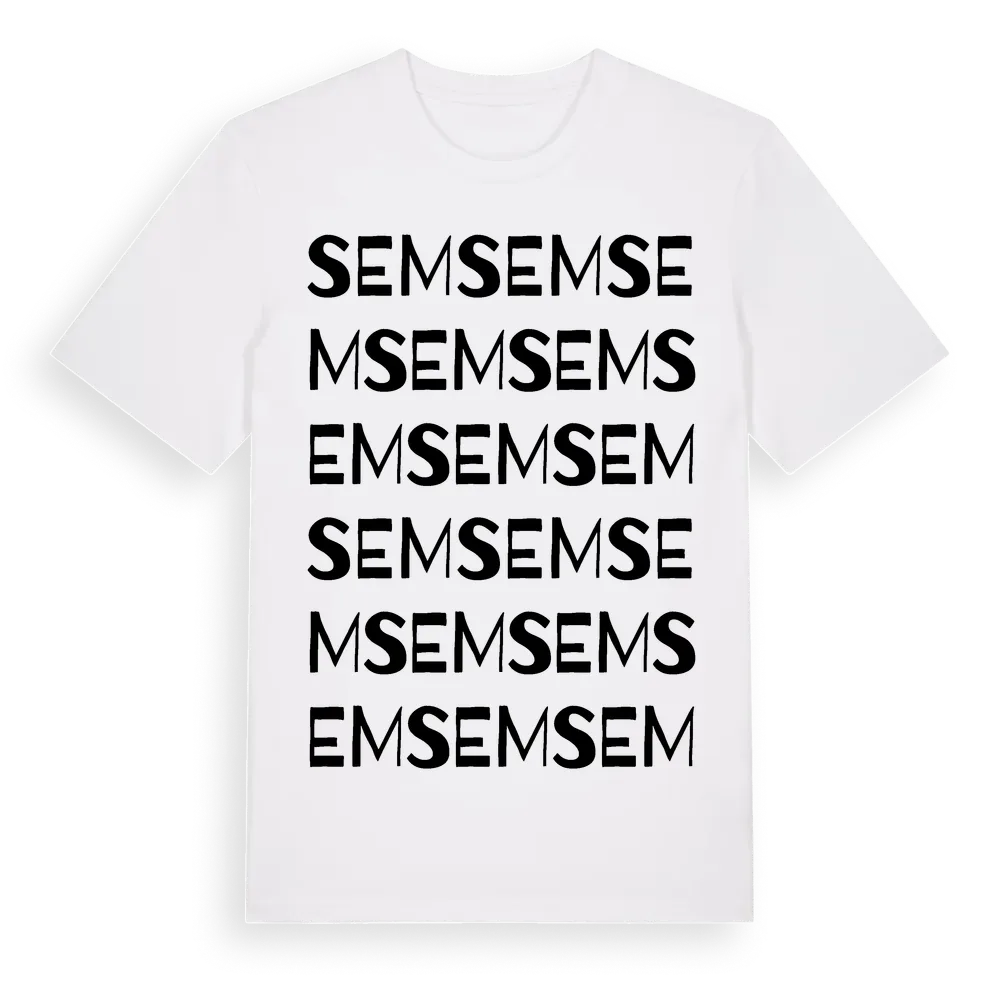 Sem ordlek t-shirt är inspirerad av byn Sem i Jämtlands län, Sverige. Tröjan är designad för dig som har en speciell koppling till platsen – oavsett om du bor här, har rötterna här eller bara älskar Sem.