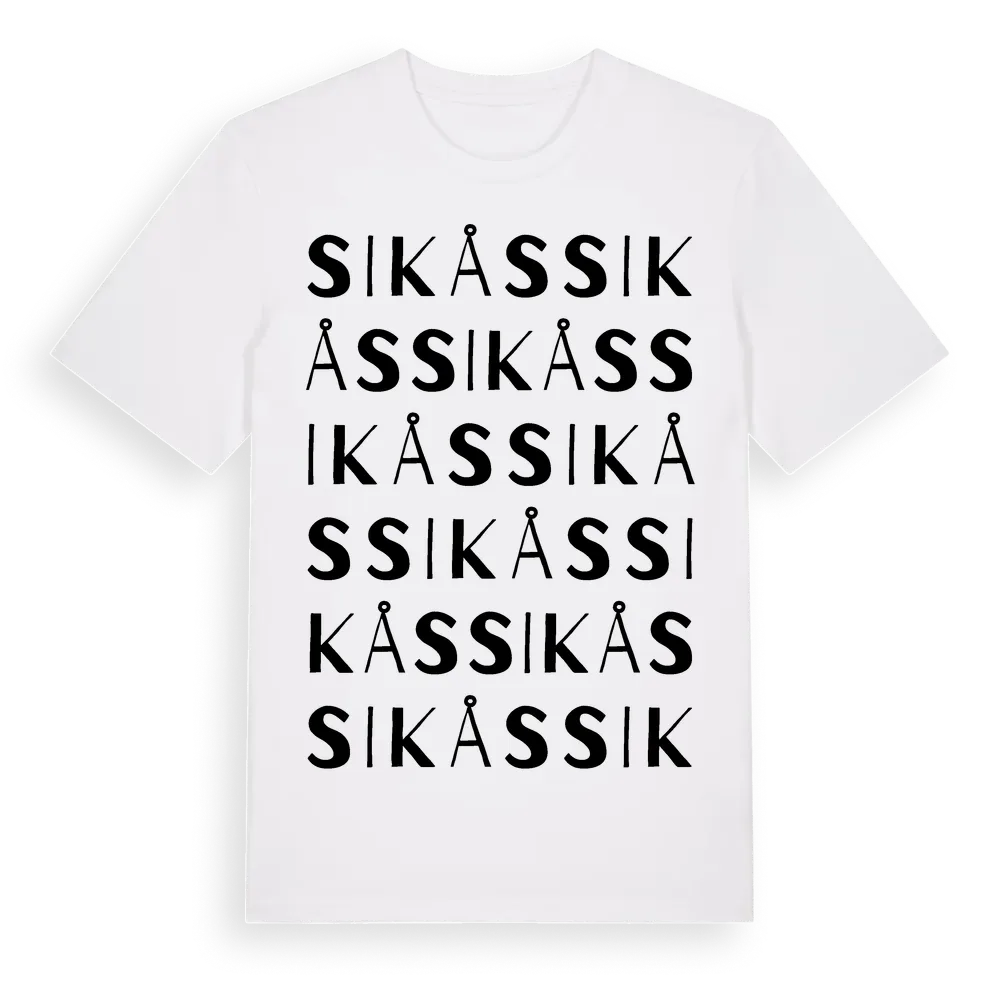 En ordlek byggd på Sikåss namn. Subtilt och klurig – ett motiv som bara de som verkligen känner platsen fullt ut förstår. Premium bomull, unisex – från byn Sikås i Jämtlands län.
