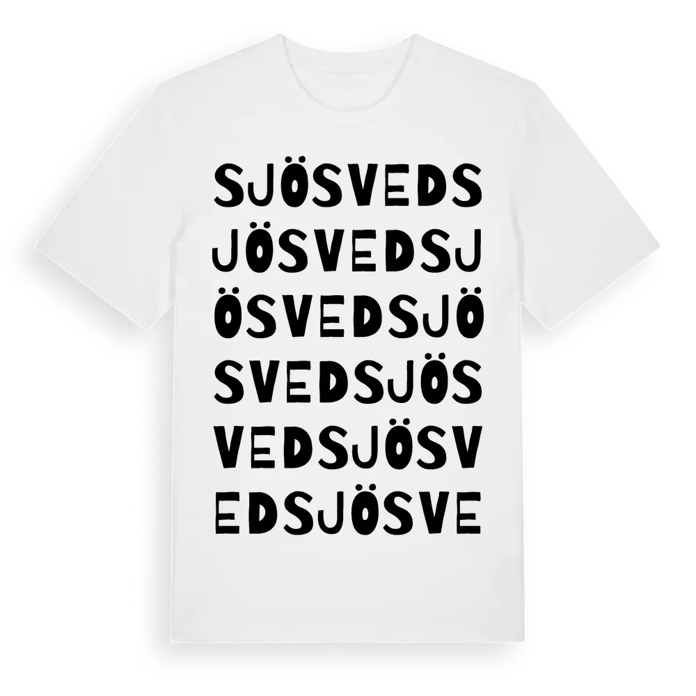 Sjösved ordlek t-shirt är inspirerad av byn Sjösved i Jämtlands län, Sverige. Tröjan är designad för dig som har en speciell koppling till platsen – oavsett om du bor här, har rötterna här eller bara älskar Sjösved.