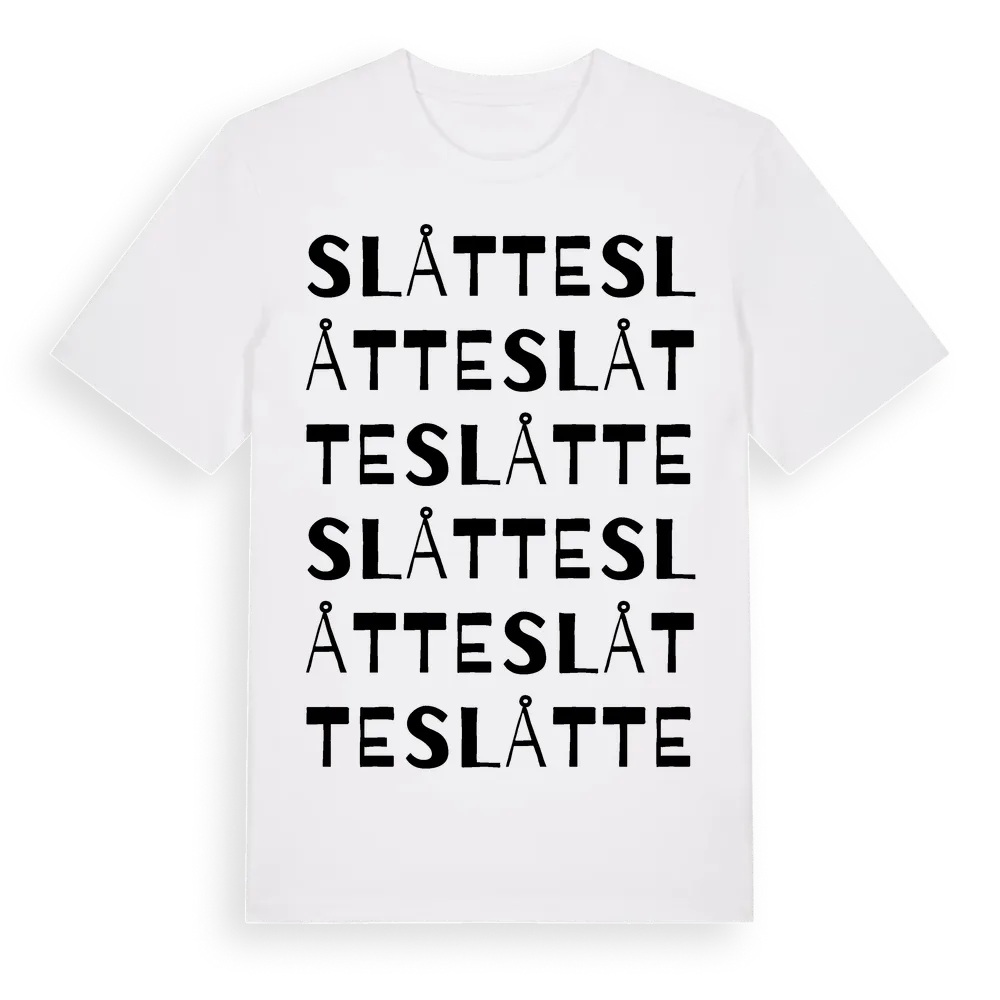 Slåtte ordlek t-shirt är inspirerad av byn Slåtte i Jämtlands län, Sverige. Tröjan är designad för dig som har en speciell koppling till platsen – oavsett om du bor här, har rötterna här eller bara älskar Slåtte.
