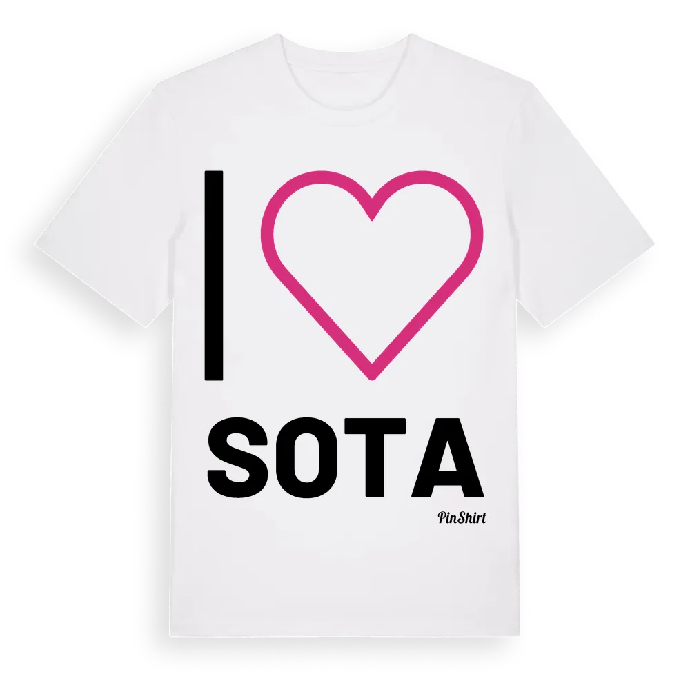 Det klassiska "I ❤ Sota"-motivet i stort format som täcker hela bröstet. För dig som vill visa kärleken till Sota på riktigt. Premium bomull, unisex – från byn Sota i Jämtlands län.