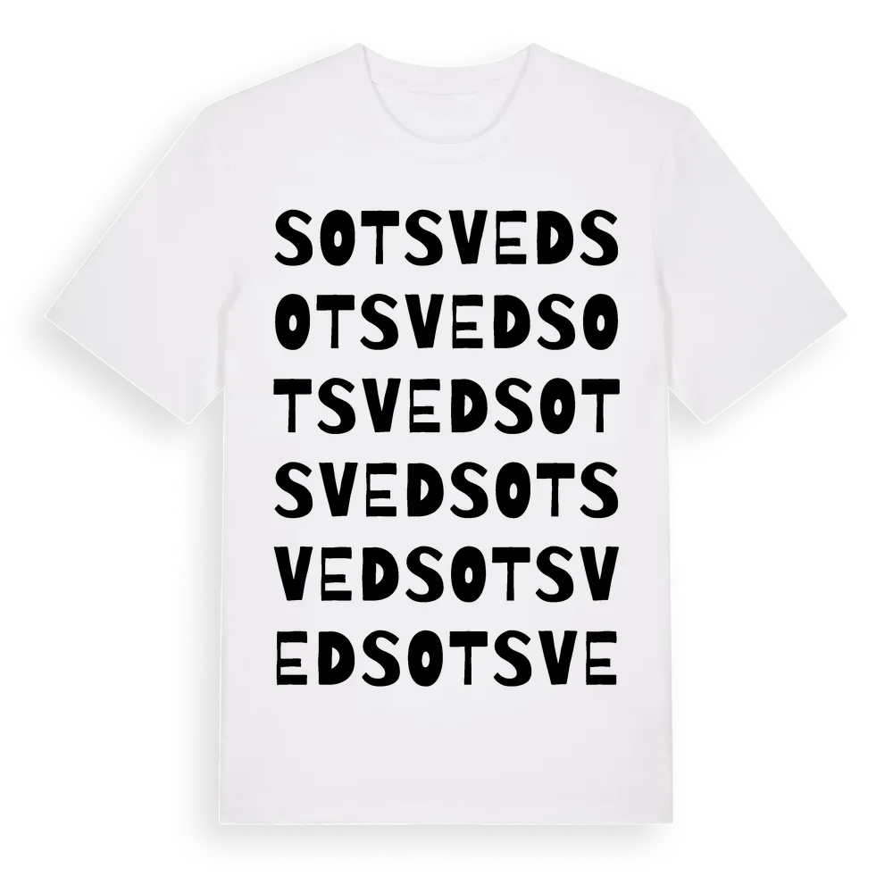 Sotsved ordlek t-shirt är inspirerad av Sotsved i Jämtlands län, Sverige. Tröjan är designad för dig som har en speciell koppling till platsen – oavsett om du bor här, har rötterna här eller bara älskar Sotsved.
