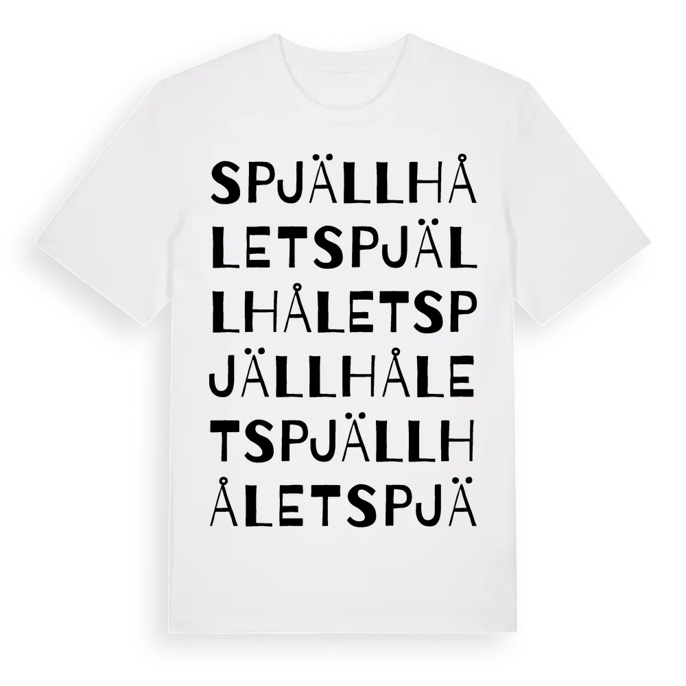 Spjällhålet ordlek t-shirt är inspirerad av Spjällhålet i Jämtlands län, Sverige. Tröjan är designad för dig som har en speciell koppling till platsen – oavsett om du bor här, har rötterna här eller bara älskar Spjällhålet.