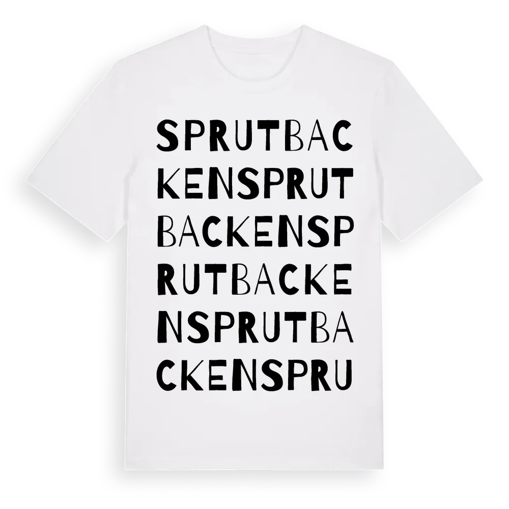 Sprutbacken ordlek t-shirt är inspirerad av Sprutbacken i Jämtlands län, Sverige. Tröjan är designad för dig som har en speciell koppling till platsen – oavsett om du bor här, har rötterna här eller bara älskar Sprutbacken.