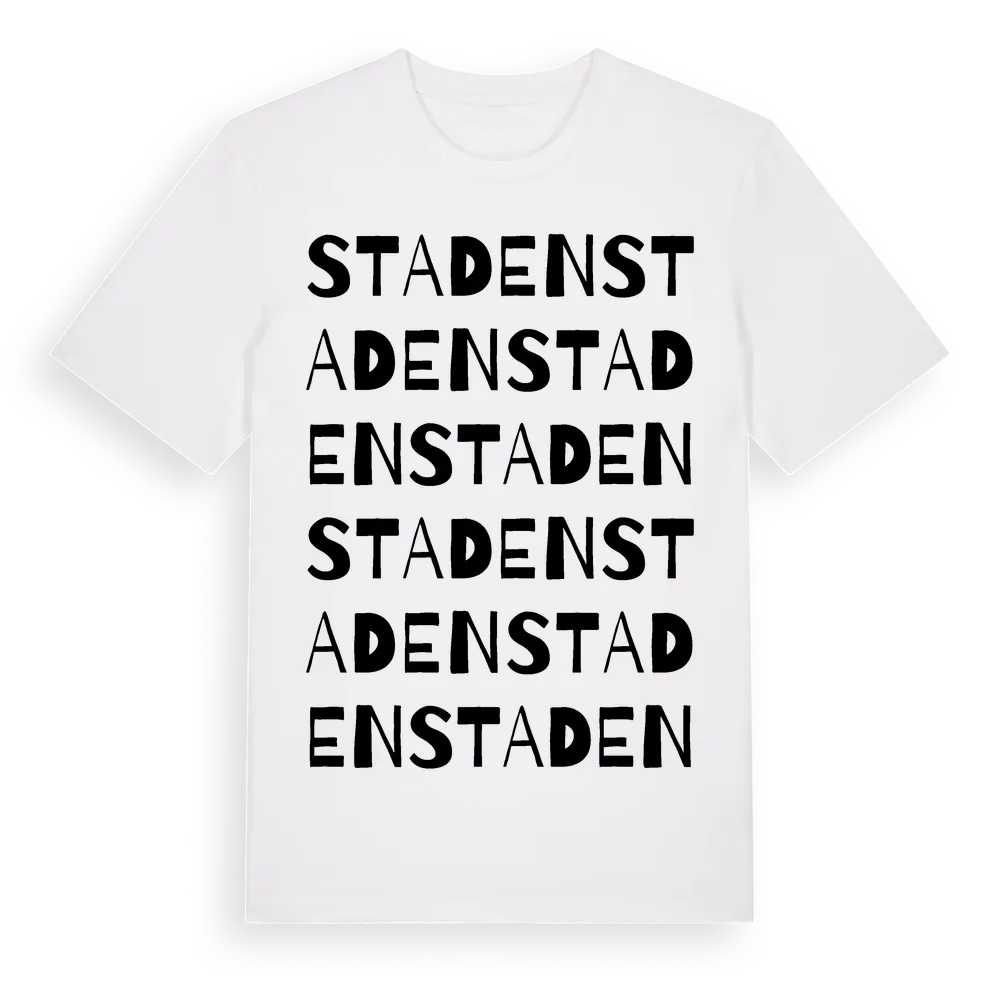 En ordlek byggd på Stadens namn. Subtilt och klurig – ett motiv som bara de som verkligen känner platsen fullt ut förstår. Premium bomull, unisex – från Staden i Jämtlands län.
