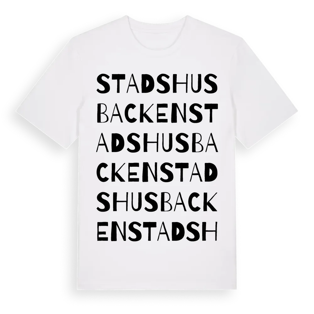 Stadshusbacken ordlek t-shirt är inspirerad av Stadshusbacken i Jämtlands län, Sverige. Tröjan är designad för dig som har en speciell koppling till platsen – oavsett om du bor här, har rötterna här eller bara älskar Stadshusbacken.
