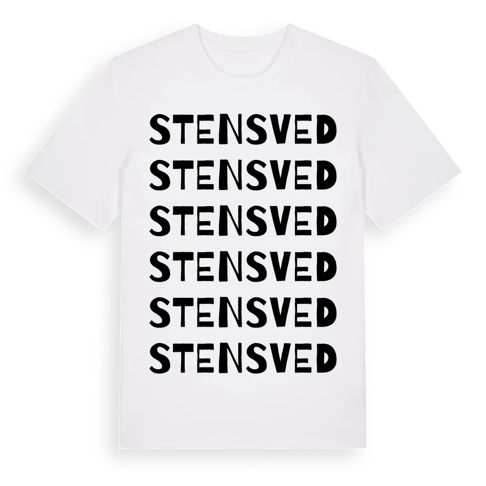Stensved ordlek t-shirt är inspirerad av byn Stensved i Jämtlands län, Sverige. Tröjan är designad för dig som har en speciell koppling till platsen – oavsett om du bor här, har rötterna här eller bara älskar Stensved.