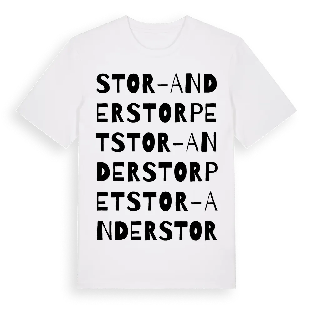 Stor-Anderstorpet ordlek t-shirt är inspirerad av Stor-Anderstorpet i Jämtlands län, Sverige. Tröjan är designad för dig som har en speciell koppling till platsen – oavsett om du bor här, har rötterna här eller bara älskar Stor-Anderstorpet.
