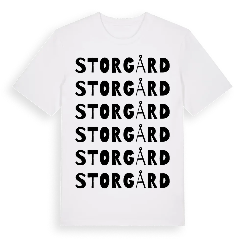 Storgård ordlek t-shirt är inspirerad av Storgård i Jämtlands län, Sverige. Tröjan är designad för dig som har en speciell koppling till platsen – oavsett om du bor här, har rötterna här eller bara älskar Storgård.