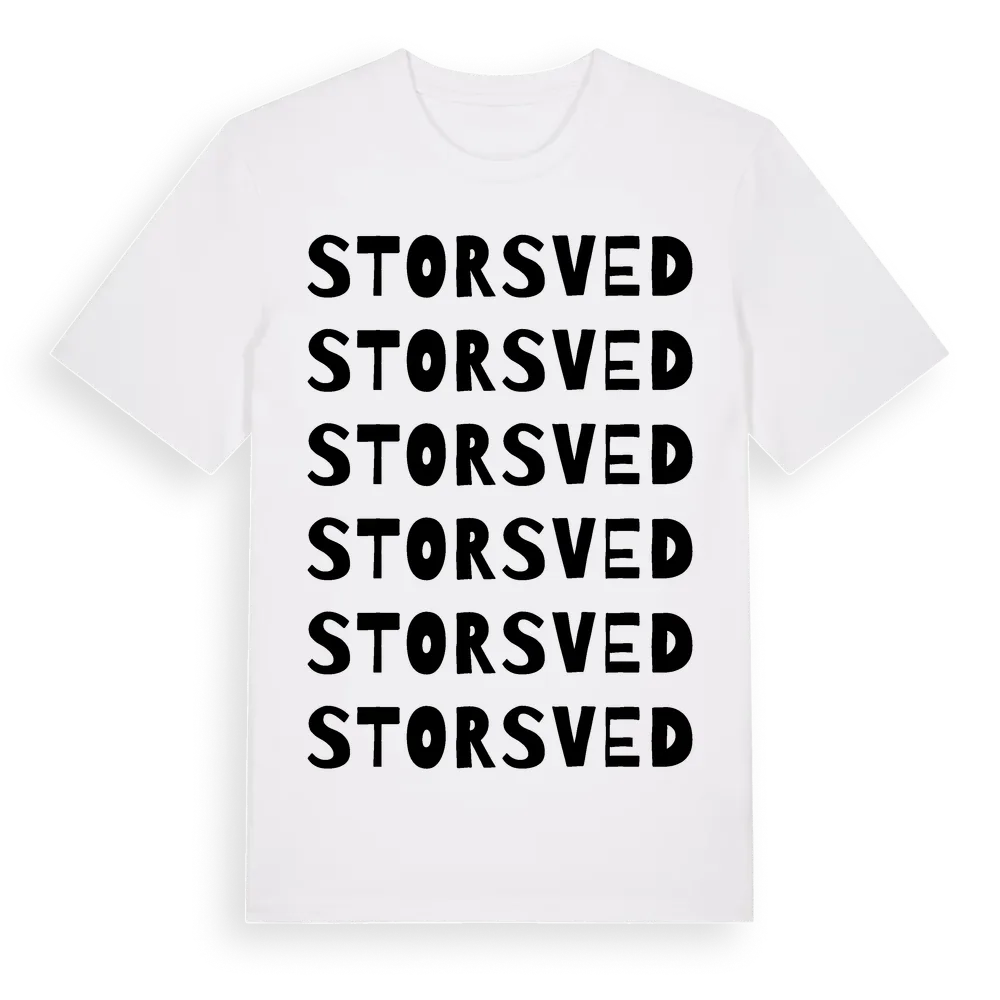 Storsved ordlek t-shirt är inspirerad av Storsved i Jämtlands län, Sverige. Tröjan är designad för dig som har en speciell koppling till platsen – oavsett om du bor här, har rötterna här eller bara älskar Storsved.