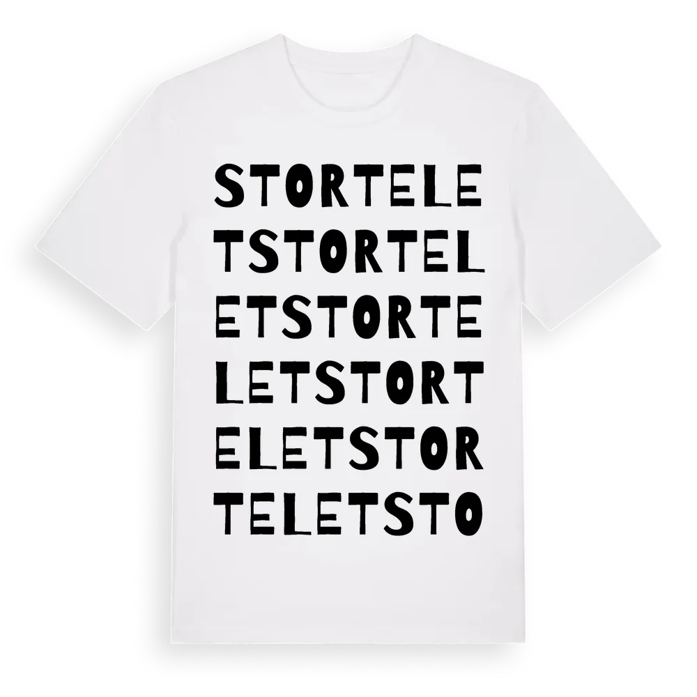 Stortelet ordlek t-shirt är inspirerad av Stortelet i Jämtlands län, Sverige. Tröjan är designad för dig som har en speciell koppling till platsen – oavsett om du bor här, har rötterna här eller bara älskar Stortelet.