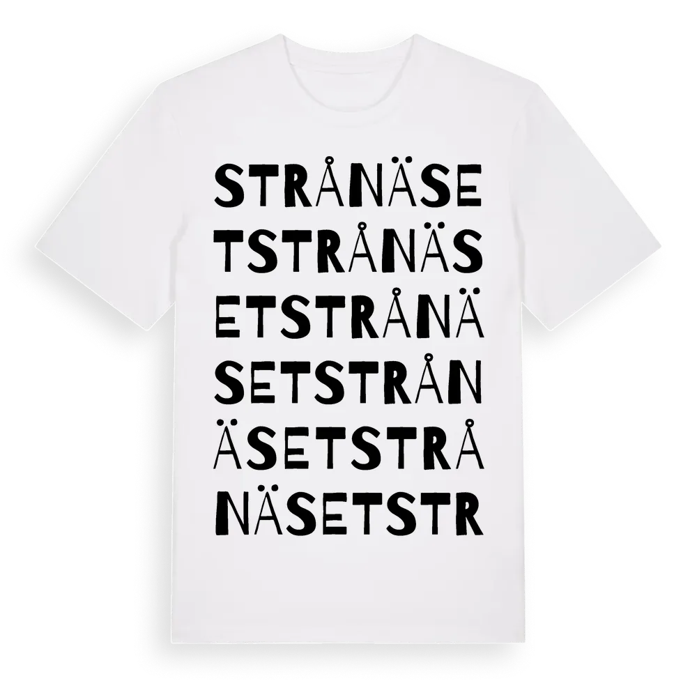 Strånäset ordlek t-shirt är inspirerad av Strånäset i Jämtlands län, Sverige. Tröjan är designad för dig som har en speciell koppling till platsen – oavsett om du bor här, har rötterna här eller bara älskar Strånäset.