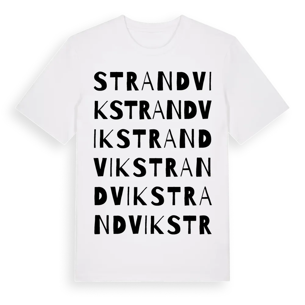 Strandvik ordlek t-shirt är inspirerad av Strandvik i Jämtlands län, Sverige. Tröjan är designad för dig som har en speciell koppling till platsen – oavsett om du bor här, har rötterna här eller bara älskar Strandvik.