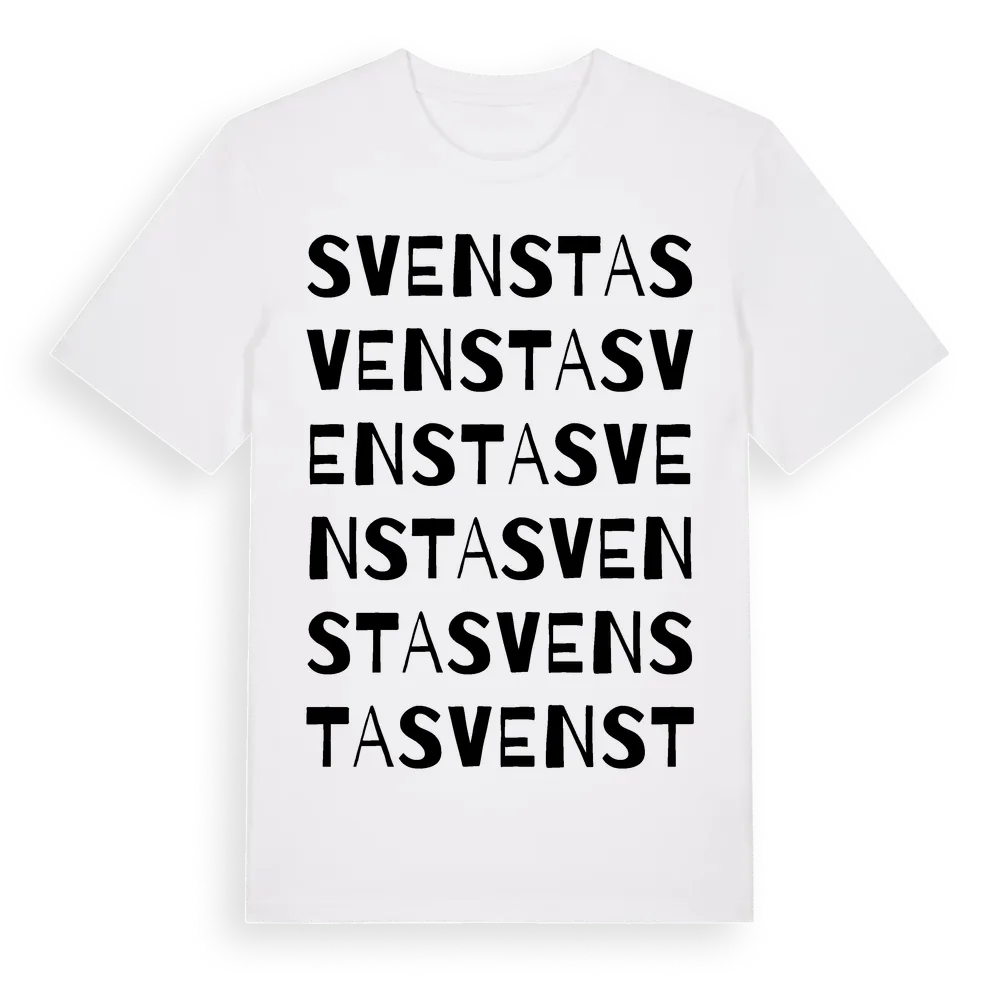 Svensta ordlek t-shirt är inspirerad av byn Svensta i Jämtlands län, Sverige. Tröjan är designad för dig som har en speciell koppling till platsen – oavsett om du bor här, har rötterna här eller bara älskar Svensta.