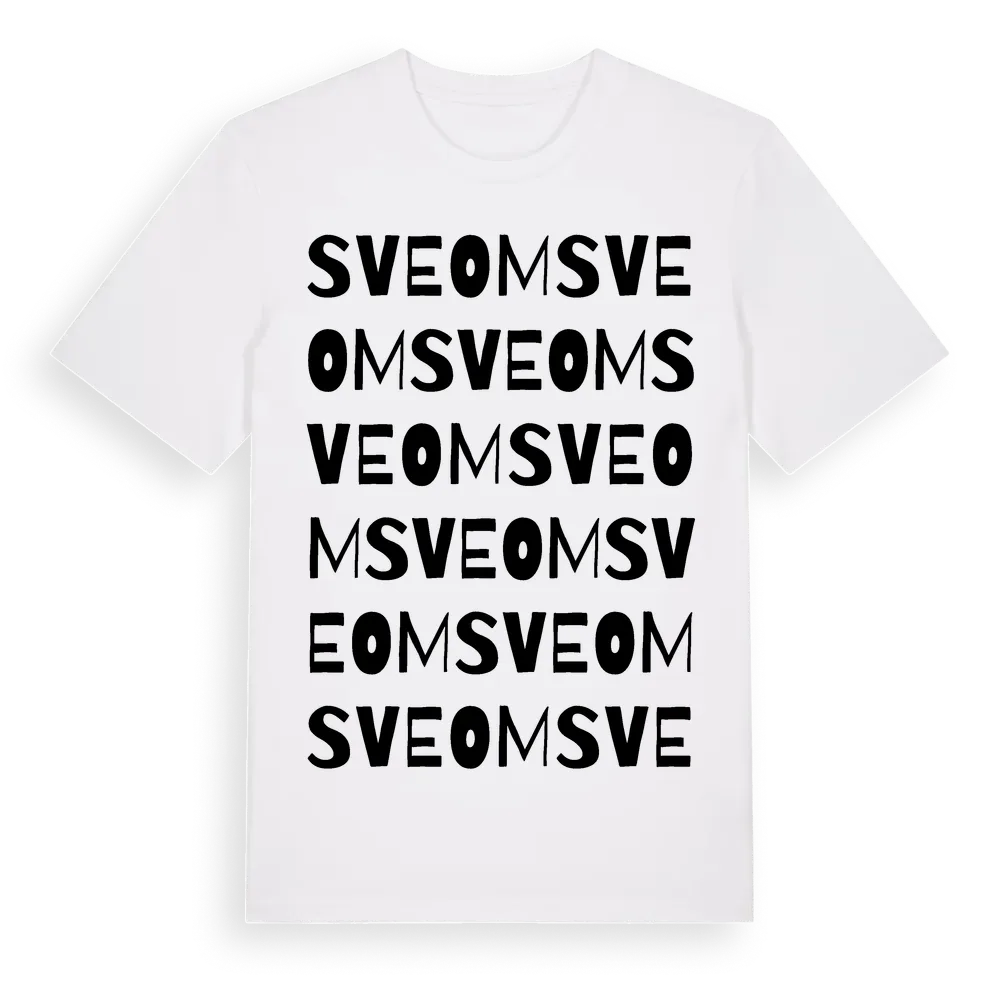 Sveom ordlek t-shirt är inspirerad av Sveom i Jämtlands län, Sverige. Tröjan är designad för dig som har en speciell koppling till platsen – oavsett om du bor här, har rötterna här eller bara älskar Sveom.