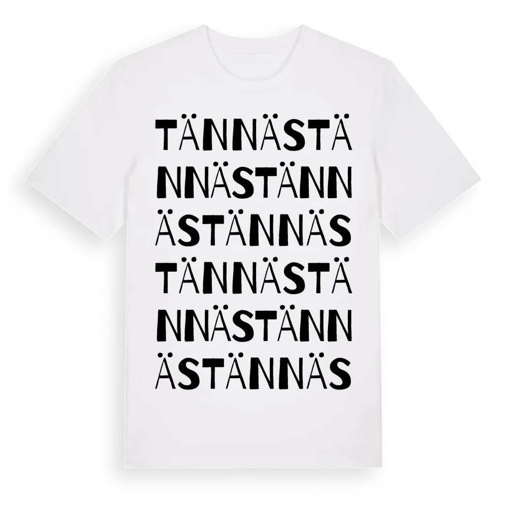 En ordlek byggd på Tännäss namn. Subtilt och klurig – ett motiv som bara de som verkligen känner platsen fullt ut förstår. Premium bomull, unisex – från byn Tännäs i Jämtlands län.