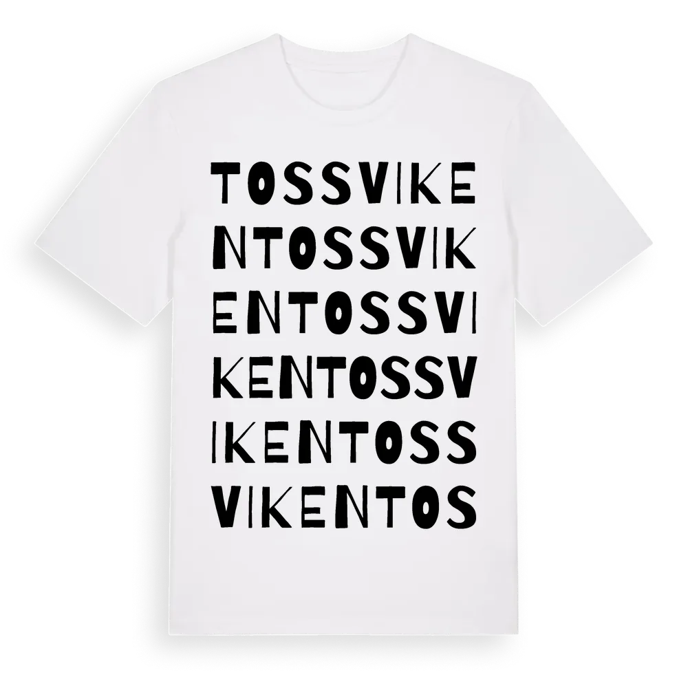 Tossviken ordlek t-shirt är inspirerad av Tossviken i Jämtlands län, Sverige. Tröjan är designad för dig som har en speciell koppling till platsen – oavsett om du bor här, har rötterna här eller bara älskar Tossviken.