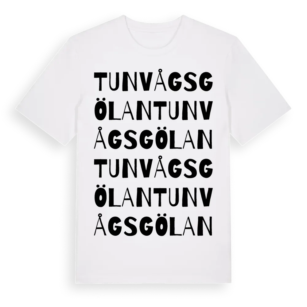 Tunvågsgölan ordlek t-shirt är inspirerad av Tunvågsgölan i Jämtlands län, Sverige. Tröjan är designad för dig som har en speciell koppling till platsen – oavsett om du bor här, har rötterna här eller bara älskar Tunvågsgölan.