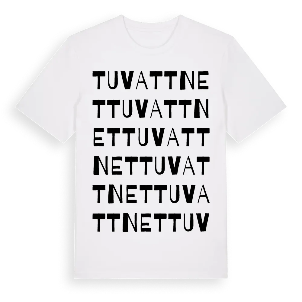 Tuvattnet ordlek t-shirt är inspirerad av byn Tuvattnet i Jämtlands län, Sverige. Tröjan är designad för dig som har en speciell koppling till platsen – oavsett om du bor här, har rötterna här eller bara älskar Tuvattnet.