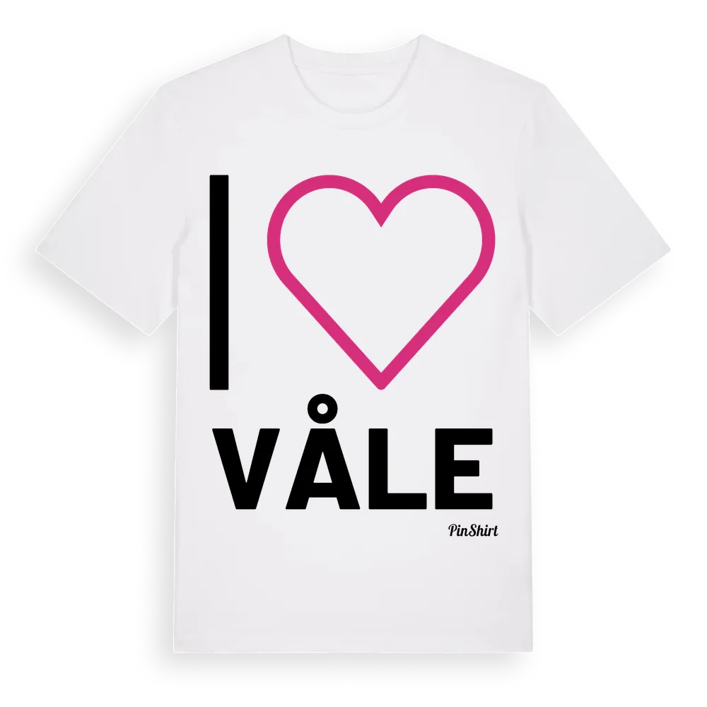 Det klassiska "I ❤ Våle"-motivet i stort format som täcker hela bröstet. För dig som vill visa kärleken till Våle på riktigt. Premium bomull, unisex – från byn Våle i Jämtlands län.