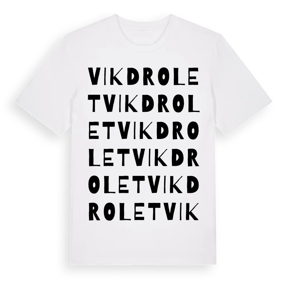Vikdrolet ordlek t-shirt är inspirerad av Vikdrolet i Jämtlands län, Sverige. Tröjan är designad för dig som har en speciell koppling till platsen – oavsett om du bor här, har rötterna här eller bara älskar Vikdrolet.