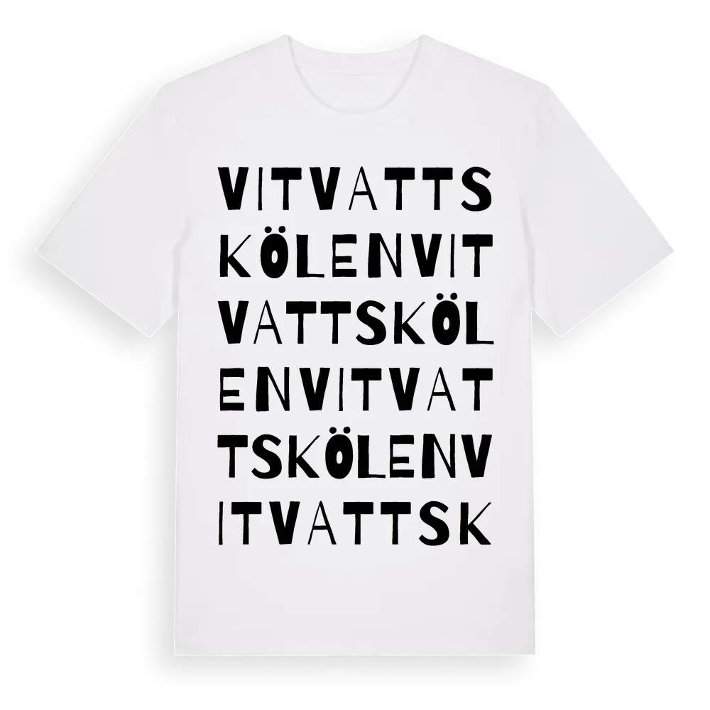 Vitvattskölen ordlek t-shirt är inspirerad av Vitvattskölen i Jämtlands län, Sverige. Tröjan är designad för dig som har en speciell koppling till platsen – oavsett om du bor här, har rötterna här eller bara älskar Vitvattskölen.