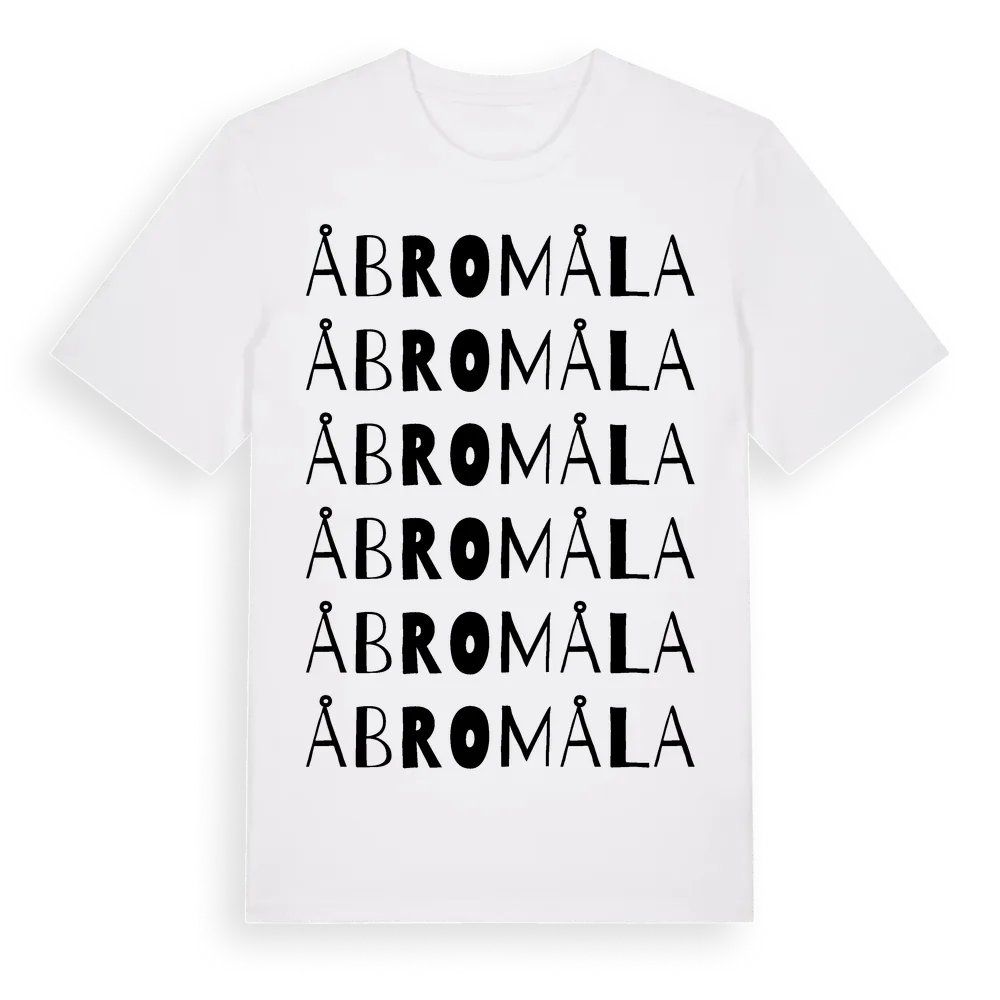 Åbromåla ordlek t-shirt är inspirerad av Åbromåla i Jönköpings län, Sverige. Tröjan är designad för dig som har en speciell koppling till platsen – oavsett om du bor här, har rötterna här eller bara älskar Åbromåla.