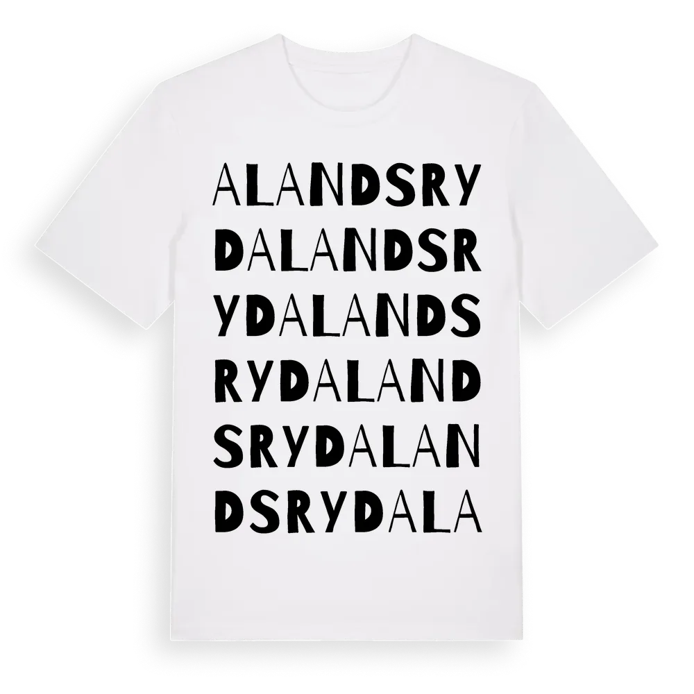 Alandsryd ordlek t-shirt är inspirerad av stadsdelen Alandsryd i Jönköpings län, Sverige. Tröjan är designad för dig som har en speciell koppling till platsen – oavsett om du bor här, har rötterna här eller bara älskar Alandsryd.