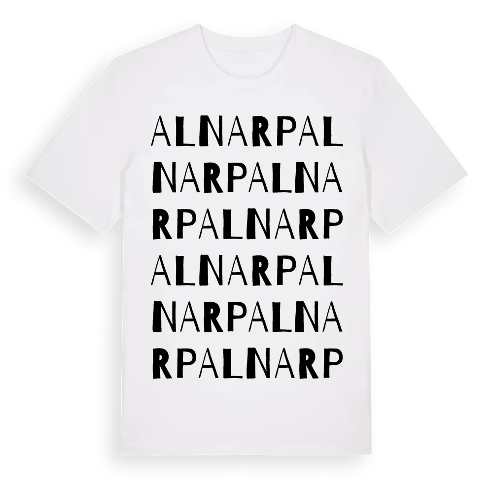 Alnarp ordlek t-shirt är inspirerad av Alnarp i Jönköpings län, Sverige. Tröjan är designad för dig som har en speciell koppling till platsen – oavsett om du bor här, har rötterna här eller bara älskar Alnarp.