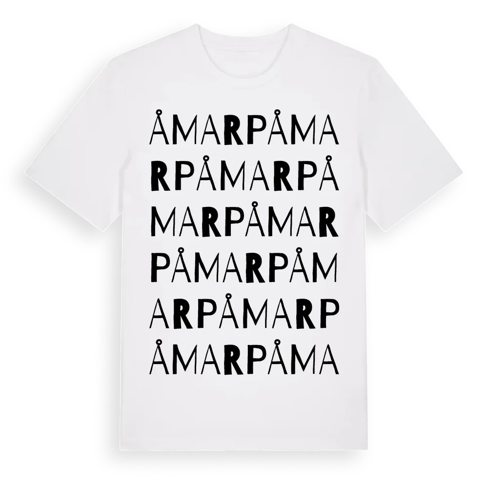 Åmarp ordlek t-shirt är inspirerad av Åmarp i Jönköpings län, Sverige. Tröjan är designad för dig som har en speciell koppling till platsen – oavsett om du bor här, har rötterna här eller bara älskar Åmarp.