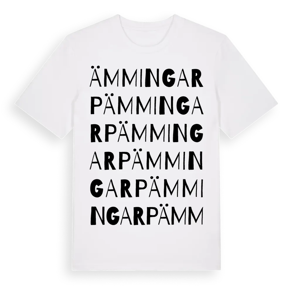 Ämmingarp ordlek t-shirt är inspirerad av byn Ämmingarp i Jönköpings län, Sverige. Tröjan är designad för dig som har en speciell koppling till platsen – oavsett om du bor här, har rötterna här eller bara älskar Ämmingarp.