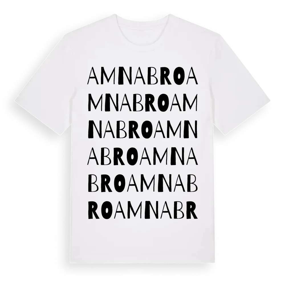 Amnabro ordlek t-shirt är inspirerad av byn Amnabro i Jönköpings län, Sverige. Tröjan är designad för dig som har en speciell koppling till platsen – oavsett om du bor här, har rötterna här eller bara älskar Amnabro.
