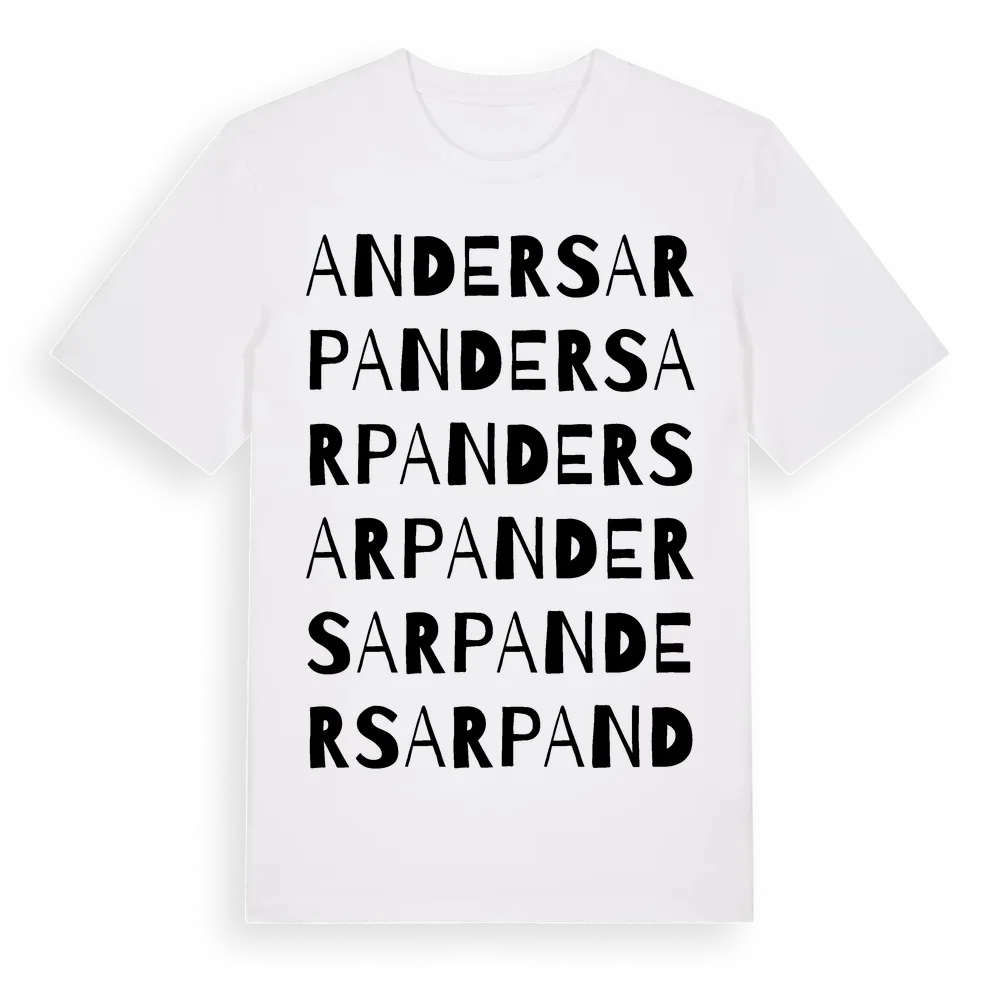 Andersarp ordlek t-shirt är inspirerad av Andersarp i Jönköpings län, Sverige. Tröjan är designad för dig som har en speciell koppling till platsen – oavsett om du bor här, har rötterna här eller bara älskar Andersarp.