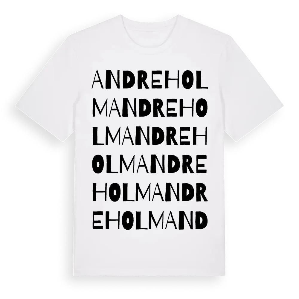 Andreholm ordlek t-shirt är inspirerad av Andreholm i Jönköpings län, Sverige. Tröjan är designad för dig som har en speciell koppling till platsen – oavsett om du bor här, har rötterna här eller bara älskar Andreholm.